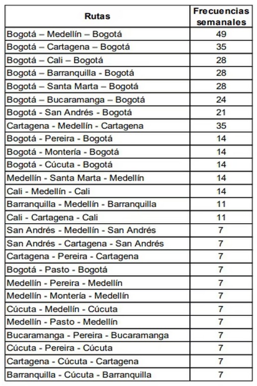 Rutas y frecuencias aéreas que tienen el visto bueno la Aerocivil: