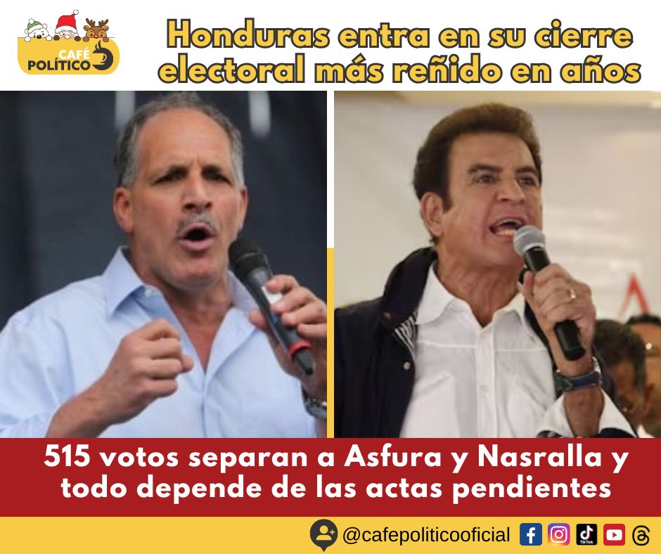 Honduras vive un suspenso electoral pocas veces visto. Tras el cierre oficial de la Transmisión de Resultados Electorales Preliminares (TREP), el país quedó frente a un virtual empate técnico: solo 515 votos separan a Nasry Asfura (Partido Nacional) de Salvador Nasralla (Partido Liberal). Una diferencia tan estrecha que impide cualquier proyección seria mientras miles de documentos aún están bajo revisión.