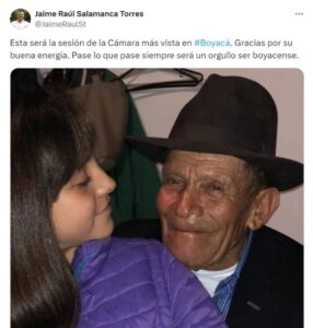 Salamanca restó importancia a las denuncias y destacó el impacto de esta sesión para su departamento. “Esta será la sesión de la Cámara más vista en Boyacá. Gracias por su buena energía. Pase lo que pase, siempre será un orgullo ser boyacense”, compartió en su perfil de X, con una postal en la que un hombre campesino acompañado de una niña, con semblante sonriente.