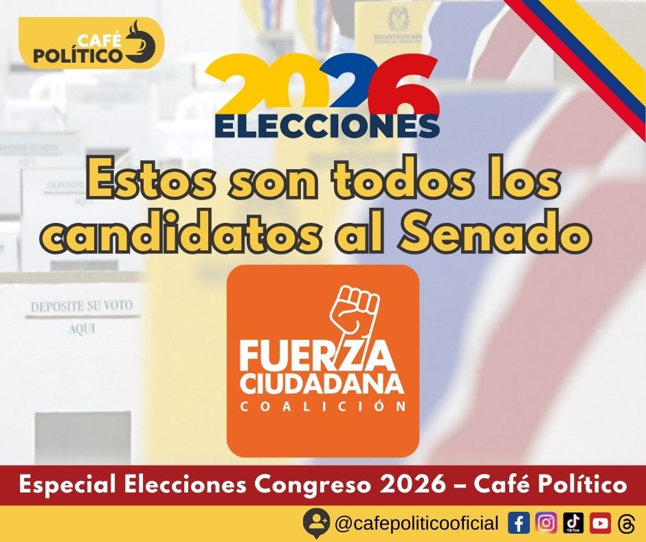 A continuación, la lista completa de candidatos al Senado de Fuerza Ciudadana, respetando el número asignado en el tarjetón (sin ceros a la izquierda):