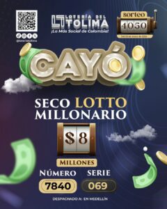 Es de destacar que para el mes de enero, cayeron dos Secos de Oro, un Seco Megafortuna, dos Secos Lotto Millonario, La Casa de mis Sueños y en el último sorteo del mes, el Seco Lotto Millonario con el número 7840 de la serie 069 en Medellín.