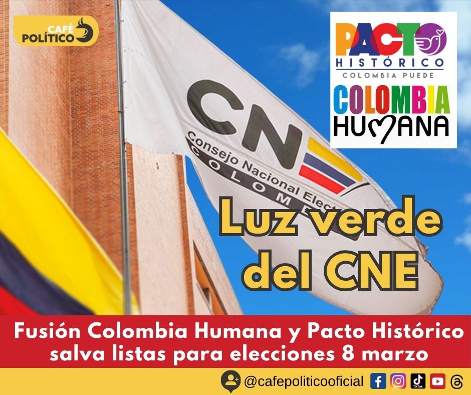 ¡Última hora electoral! El Consejo Nacional Electoral (CNE) dio aprobación unánime (7-1) a la fusión de Colombia Humana con Pacto Histórico el 3 de marzo, despejando el camino para las legislativas del 8M. Adiós a demandas por doble militancia y listas en riesgo en Bogotá, Valle y más.