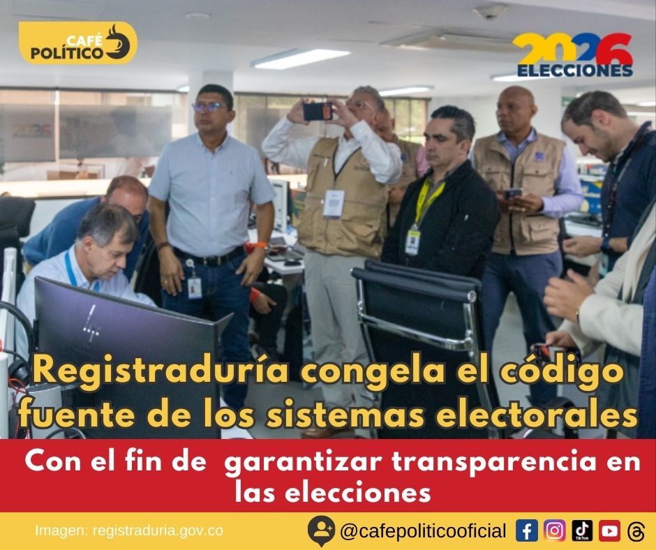 La Registraduría Nacional del Estado Civil ejecutó el proceso de congelamiento del código fuente de los softwares electorales que se utilizarán en las elecciones de Congreso de la República y en las consultas presidenciales. La medida busca garantizar la transparencia, integridad y seguridad tecnológica del sistema que permitirá el procesamiento y divulgación de los resultados electorales.