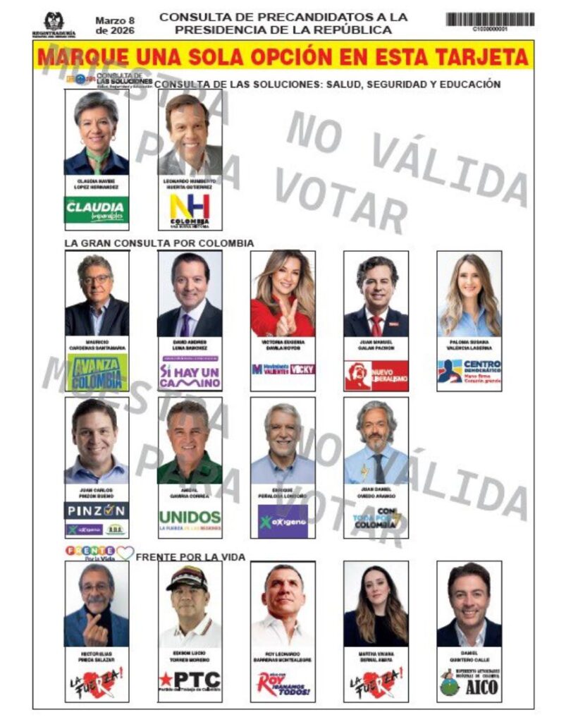 La Registraduría Nacional del Estado Civil publicó los modelos oficiales de las tarjetas electorales que se utilizarán en las elecciones legislativas del 13 de marzo y, de manera paralela, definió la tarjeta única de las consultas presidenciales interpartidistas que se realizarán el 8 de marzo de 2026, el mismo día en que los colombianos elegirán Senado y Cámara.